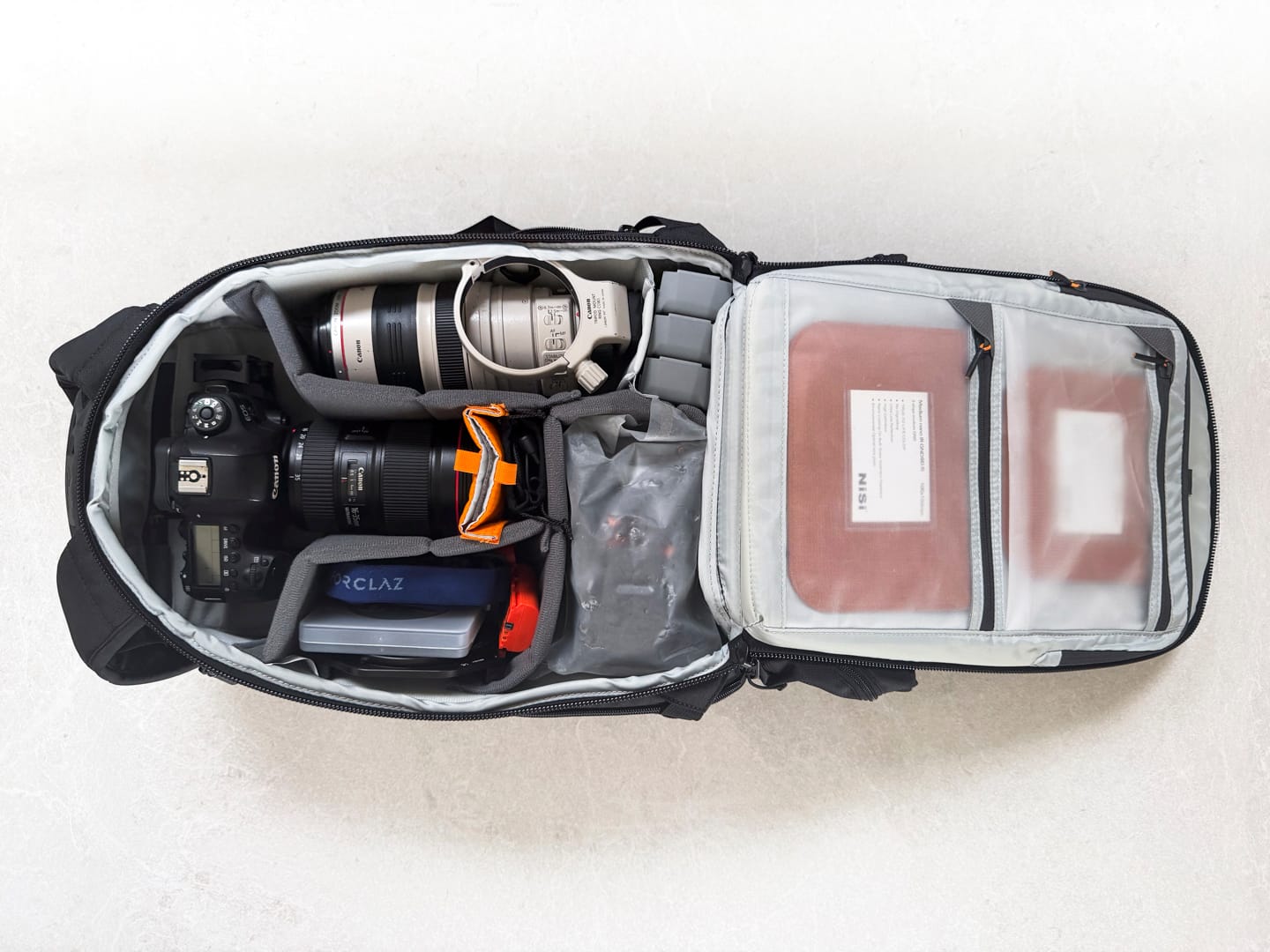 Ho sempre scelto Lowepro, e non me ne sono mai pentito. Il primo mi ha accompagnato per otto anni senza un cedimento. Il secondo è ancora parte del mio kit oggi. Quello che uso attualmente è il ProTactic BP 350 AW II — compatto, comodo, funzionale. Tutto quello che serve, niente di superfluo.